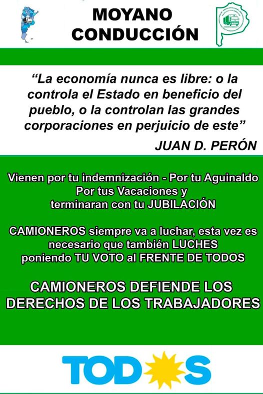En el marco de las próximas elecciones Legislativas, el Sindicato de Camioneros siempre luchó desde la perseverancia junto a Hugo y Pablo Moyano, en defensa de los derechos laborales para los trabajadores y en esta ocasión tenemos que luchar mediante el voto y así evitar la flexibilización laboral que quiere implementar la Derecha.