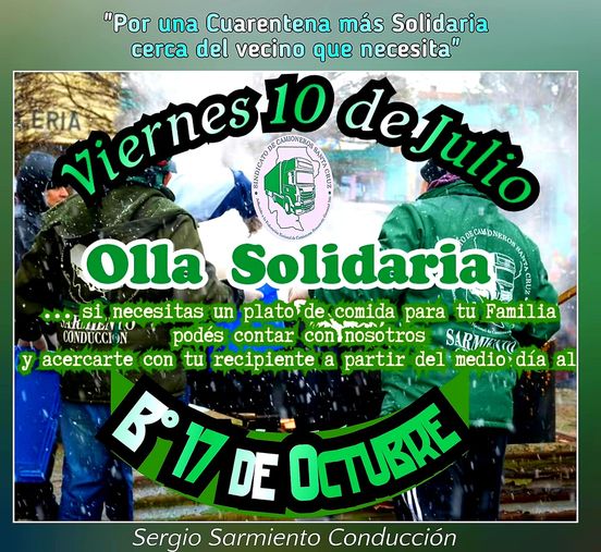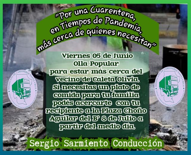 “Por una Cuarentena más Solidaria” En esta oportunidad llevando la Olla Solidaria de todos los viernes a la localidad de Pico Truncado haciéndonos solidarios con los vecinos de allí. #HugoMoyanoConducción #SergioSarmientoConducción