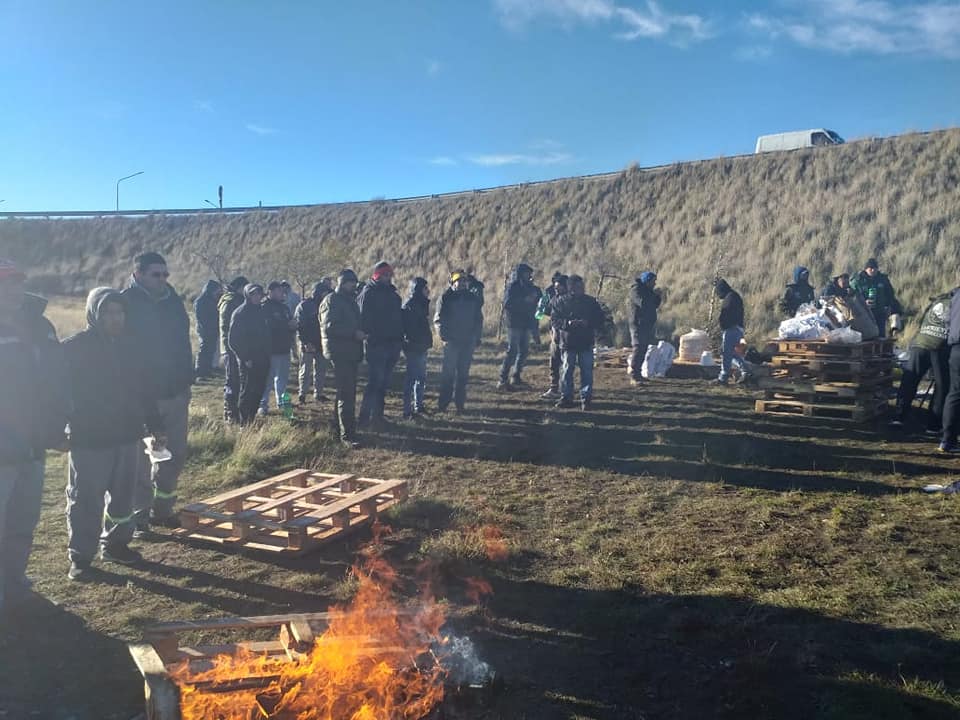 Compañeros de #CamionerosSantaCruz de la Delegación Río Gallegos apostados en camino al aeropuerto – primer puente – sumados al Paro Nacional de Actividades de la mano de Nuestro Secretario General #SergioSarmientoConducción. #HugoMoyanoConducción