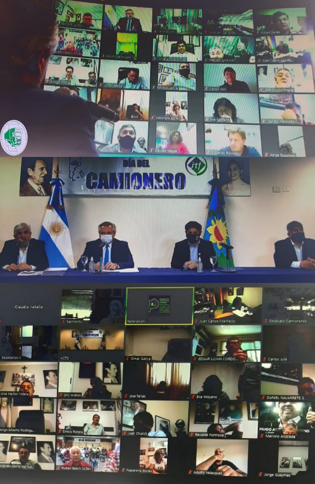 Y como las circunstancias lo requieren vía zoom. #CamioneroSantaCruz todos estuvimos presentes en la persona de Nuestro Secretario General Sergio Sarmiento. En la misma participaron Nuestros Líderes los compañeros Hugo y Pablo Moyano junto a los demás compañeros Secretarios Generales del país e integrantes de ésta gran Familia que somos Camioneros . Asimismo participaron también el Sr….