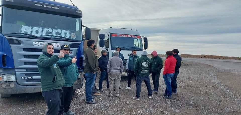 Compañeros de Camioneros Santa Cruz junto a Nuestro Secretario General Sergio Sarmiento y junto a Compañeros Camioneros de Tierra del Fuego se encuentran en el lugar del conflicto (Paso Fronterizo Argentina / Chile) Monte Aymond para asistir con provisiones básicas a modo de ayuda humanitaria a Compañeros Camioneros varados del lado chileno (por conflicto en…