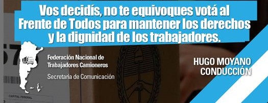 En el marco de las próximas elecciones Legislativas, el Sindicato de Camioneros siempre luchó desde la perseverancia junto a Hugo y Pablo Moyano, en defensa de los derechos laborales para los trabajadores y en esta ocasión tenemos que luchar mediante el voto y así evitar la flexibilización laboral que quiere implementar la Derecha.